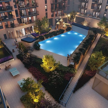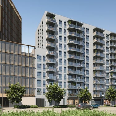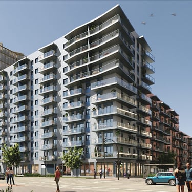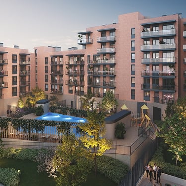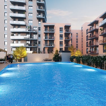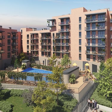 Es una promoción de 205 viviendas de 1 a 4 dormitorios, con plazas de garaje, trasteros, piscina, gimnasio, sala polivalente, zonas verdes y Smart home.