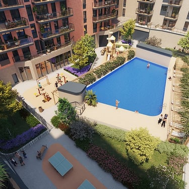 Dispone de viviendas de 1 a 4 dormitorios, con amplias y luminosas estancias, así como acceso a zonas comunes con todo tipo de servicios y comodidades: piscina, gimnasio, parque infantil, sala polivalente o zonas verdes.